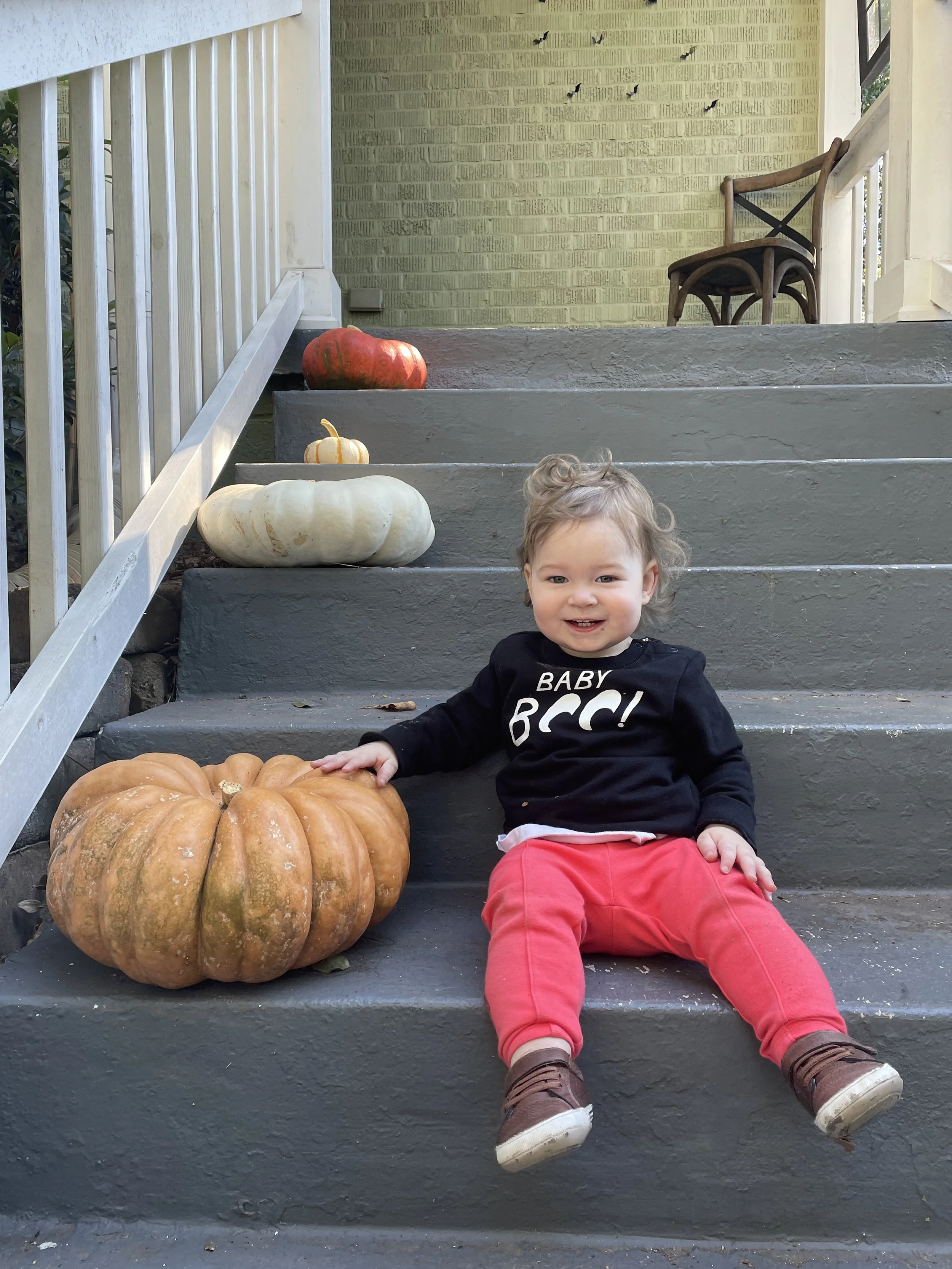 Lyla says “Hi!” to every pumpkin she sees, dresses up like a hound dog, visits Chicago and St. Louis, pets a goat, and starts a Friday afternoon neighborhood pub tradition with her friends from pre-school.